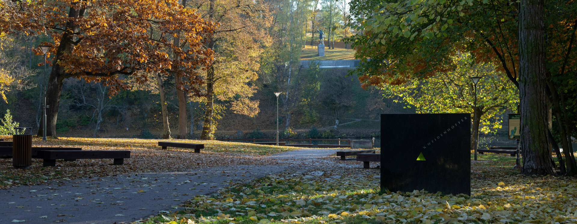 Weidenhofferův pomník není prvním objektem pojmenovaným po této slavné brodské osobnosti. Jeho jméno nesl i dřevěný altán, vystavěný v roce 1890, který stál přibližně do roku 1937 v dolní části parku Budoucnost poblíž městských hradeb. Nový monument, podobně jako altán, jakoby svou prostou formou s prvky průhledů a odlesků spíše poskytoval a rozšiřoval prostor, než přitahoval pozornost k sobě samému – stejně jako muž, jehož nám připomíná.